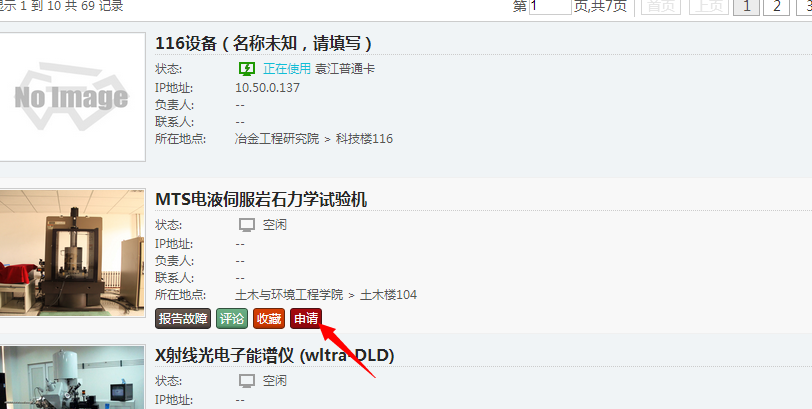 Ø 通过培训考核的仪器设备,用户可在“申请设备”中申请使用权限(下图)。