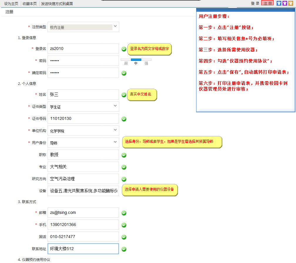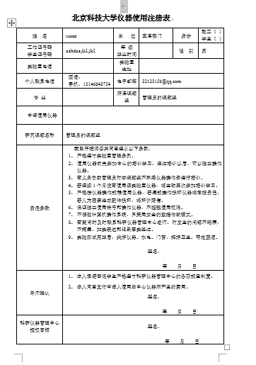 注册用户身份如果是学生,“注册申请表“除了其本人签字外要其导师签字确认,携带注册申请表及其本人校园卡(或学生卡、或饭卡、或公交卡通具体由使用单位规定),到相关仪器管理中心进行登记确认;