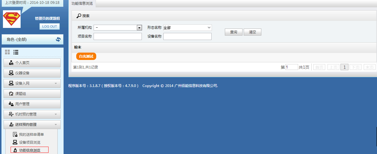 (3)通过“个人中心”→“送样预约管理” →“功能信息浏览”(下图)
