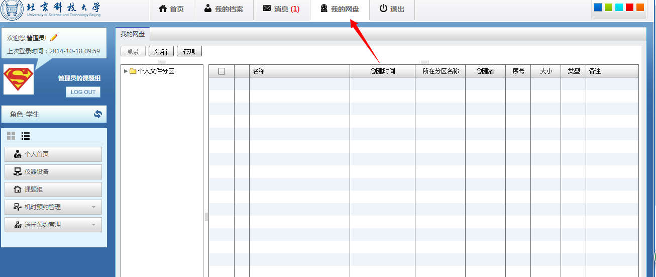 Ø 登入系统,进入“个人中心”,点击“我的网盘” 如下图。