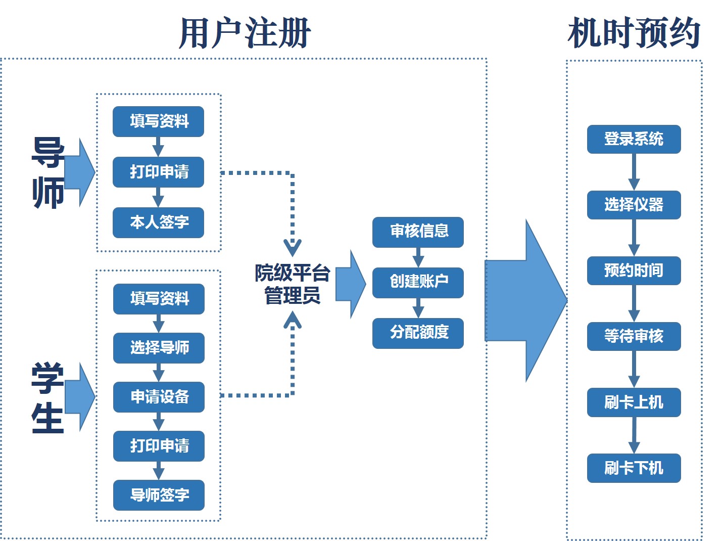 注册用户身份如果是学生,“注册申请表“除了其本人签字外要其导师签字确认,携带注册申请表及其本人校园卡,到相关院级仪器设备共享平台管理员处进行登记审核确认。